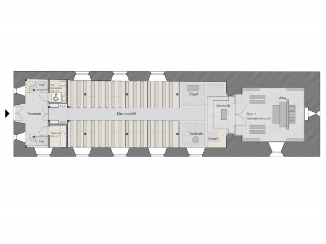 Durch den Einbau von Teeküche und WC ist die Realisierung des Nutzungskonzeptes der Kirche möglich.