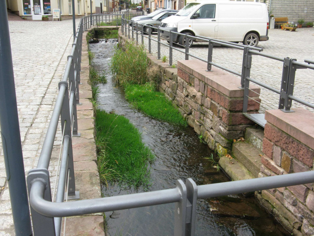 Die Bacherneuerung wurde in abgedeckten Bereichen und den engen Straßenstellen als Trog gebaut und in den aufgeweiteten Bereichen als Einzelmauern. Nach der Baumaßnahme erscheinen die Ufermauern und Brücken wieder aus Sandstein mit zurückgesetzter Verfugung . Die Tragenden Betonteile sind nicht sichtbar.
