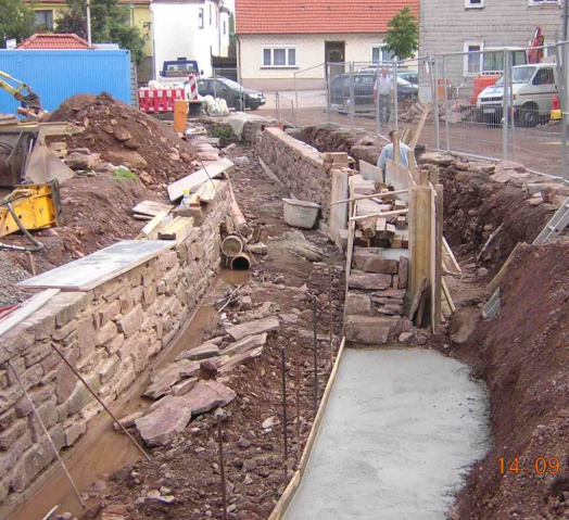 Bei dieser Baumaßnahme war eine Anliegerstraße mit Bachlauf zu sanieren.