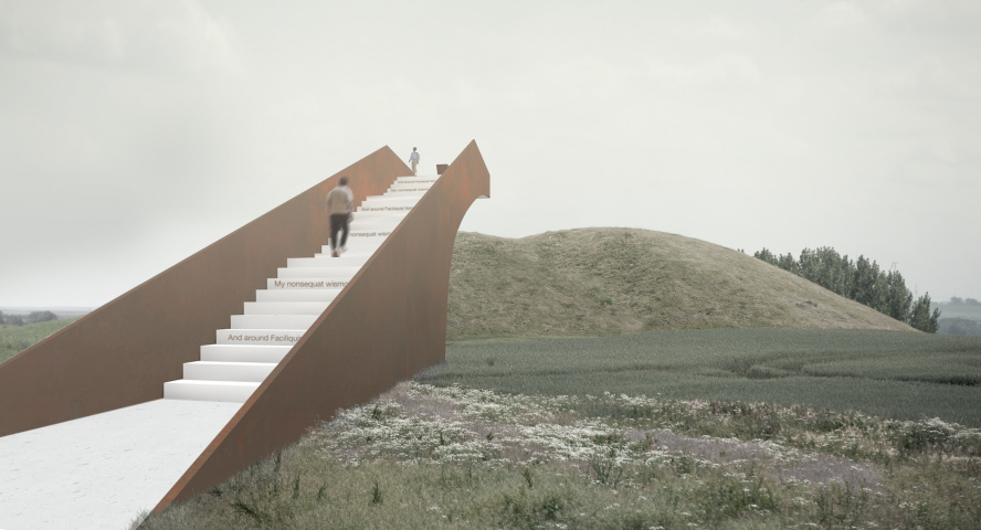 Der Raststättenbau zeigt dadurch einen Negativabdruck des Hügels. Die weiße Dachuntersicht wird nachts von unten angestrahlt. Sie kontrastiert mit den bronzefarben beschichteten Fassadenplatten und zeigt sich dadurch mit hohem Wiedererkennungswert. Im Außenraum wird ein archäologischer Erlebnispfad von der Raststätte zum Leubinger Fürstenhügel angelegt. Die besondere Spannung des archäologischen Erlebnispfads entsteht hierbei durch seine Ausformung als tieferliegender, stilisierter Graben.