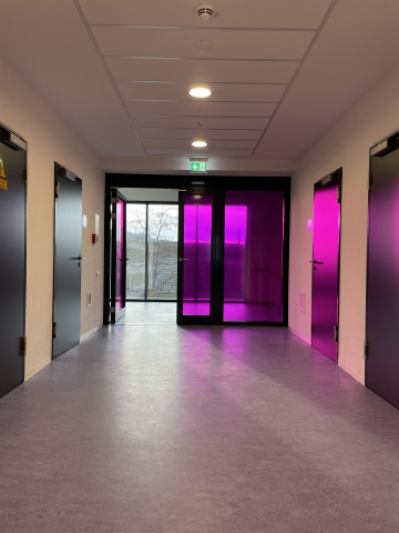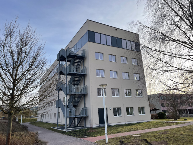 Das markante neue Treppenhaus bildet den Eintritt in den zeitgemäß, funktional und energetisch sanierten Lehr- und Lernort. Nutzungsbereiche wurden durch die Bildung von Funktionsclustern zoniert und farblich akzentuiert. Durch die zusätzliche Dachaufstockung wurden zum einen hochwertige neue Flächen geschaffen und zum anderen generierte dies attraktive Seminar- und Vorlesungsräume.