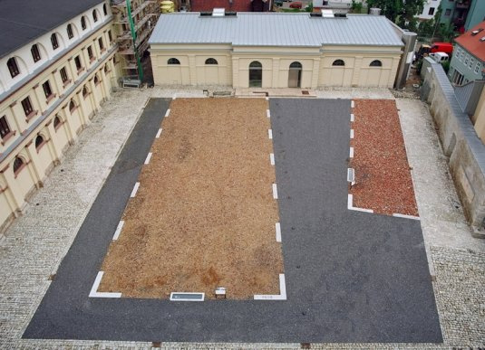 Den ehemaligen Gestapobauten im Hof widmete sich 1997 ein Künstlerischer Wettbewerb, infolge dessen der Preisträgerentwurf "Zermahlene Geschichte" von Dr. Hoheisel aus Kassel die Neugestaltung der Hofoberfläche wesentlich mitbestimmte. Der öffentliche Stadtraum des Marstallhofes wurde in seinen Proportionen zurückgewonnen und dem ursprünglichen Erscheinungsbild angeglichen. Die im Rahmen der öffentlichen Kunstaktion geschredderten und zermahlenen Hofgebäude (Holzbaracke/ Gefängnisbau) wurden in ihren Grundrissen durch Beton-Glas-Konturen/ Lichtschlitze gekennzeichnet und mit dem Schreddermaterial belegt ("begehbare" Skulptur) .