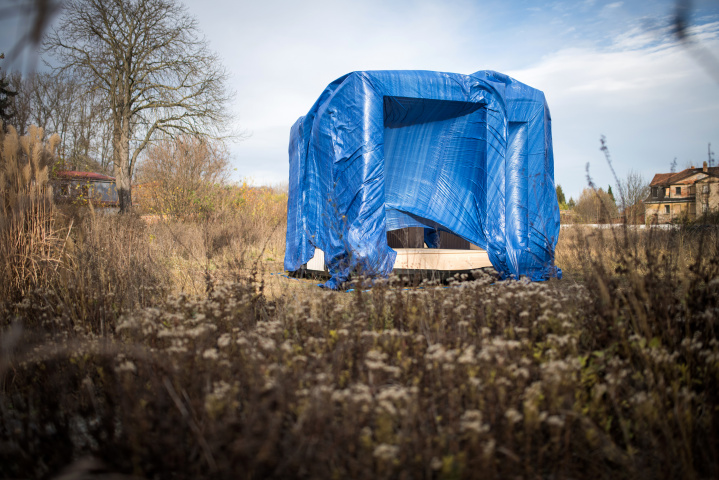 Im Rahmen eines Forschungsvorhabens des Bundes (ZukunftBau / BBSR) und in Kooperation mit der IBA Thüringen entstand aus dem Team rund um Prof. Achim Menges und Hans Drexler ein kleiner aber feiner Experimentalbau auf dem Gelände des Eiermannbaus in Apolda. Zielstellung war es das Potential des einfachen und regionalen Baustoffs Holz mit Hilfe modernster digitaler Planungswerkzeuge und Fertigungstechnologien aufzuzeigen. Dabei wurde auf das Prinzip der traditionellen Blockbauweise zurückgegriffen - diese jedoch erheblich weiterentwickelt. Entstanden ist ein ca. 15qm großer Versuchsbau der aus vertikalen und zusätzlich in freier Form angeordneten Holzbalken besteht. Durch die digitale Bearbeitung des Holzes konnte sowohl der Dämmwert des Holzes erheblich verbessert als auch hochpräzise Füge- und Verbindungslösungen realisiert werden.