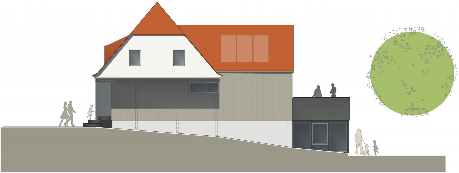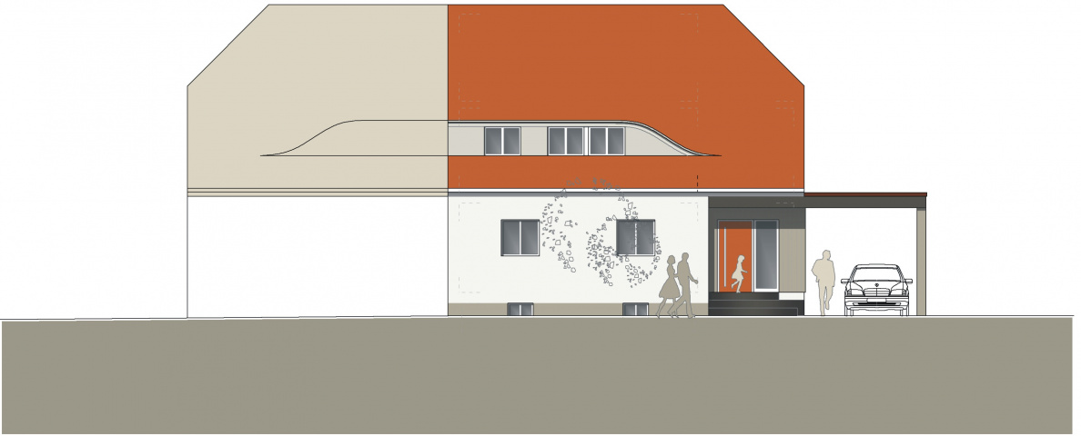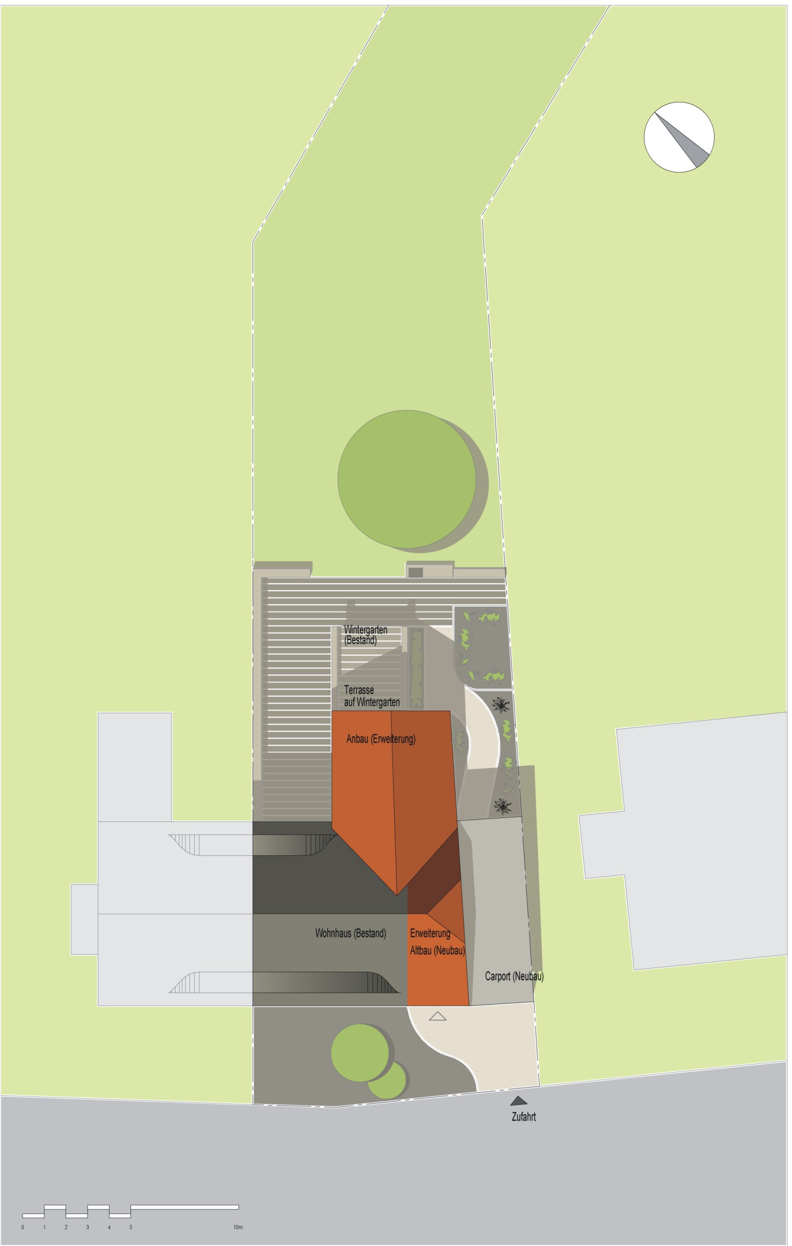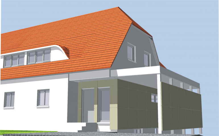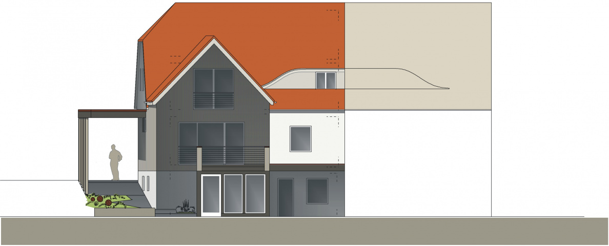 Das Siedlungshaus aus den 30ern unterhalb des Flughafens bot mit rund 80 qm nicht mehr genügend Platz um allen Ansprüchen der Familie gerecht zu werden. Die Forderungen des Bauamtes ließen wenig Spielraum zur Erweiterung. Um viel Wohnfläche zu gewinnen, ohne auf einen hohen Dämmwert zu verzichten, einigte man sich auf eine Holzrahmenbauweise.