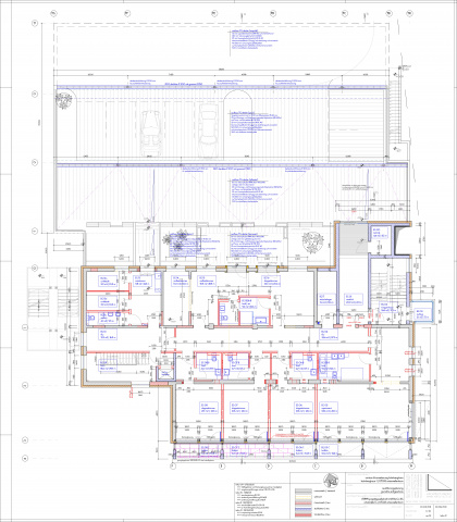 Nördlich an das Hauptgebäude grenzend ist ein zusätzliches Untergeschoss mit Tiefgarage und den Haustechnikbereichen angesetzt.