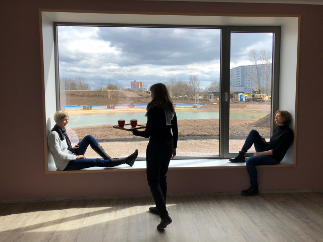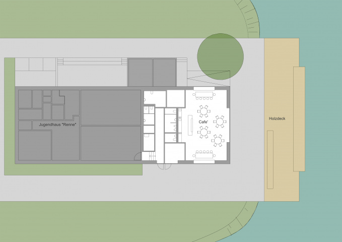 Der Abriss der ehemaligen Bauarbeiterbaracke und Neubau eines Cafes war keine Option, da die Hälfte des Gebäudes als Jugendhaus genutzt wird.
