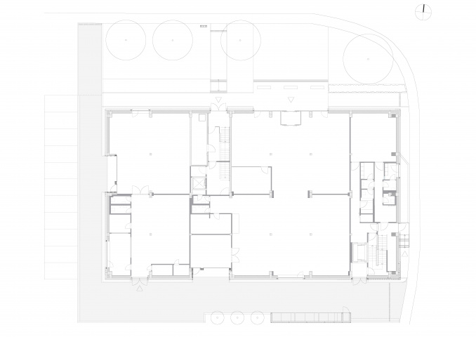 Es wurde eine neue Stahlbetondecke mit eigener Stützenstruktur eingezogen, das vorhandene 12m-Tragraster der Stützen für das Hallendach ergänzend. Zwei Aufzugsanlagen wurden eingebaut, die neuen Aussenwände sind aus hochdämmenden Mauerwerk errichtet. Die Fensteraufteilung folgt den Erfordernissen der einzelnen Nutzungen: Werkstatt, Lager, Verkauf oder Montage.