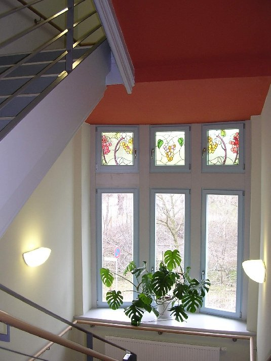Das Ambiente der Jugendstilvilla sollte bewusst weitestgehend erhalten werden, um den damit verbundenen Wohncharakter zu bewahren und ein vertrautes, nicht institutionelles Image zu schaffen. Mit der klareren Strukturierung der inneren Erschließung, verbunden mit variierenden Materialien, differenzierter Farbgebung sowie der Gestaltung mit Licht wurde ein anregendes Milieu erreicht. Die Zimmergrundrisse lassen eine flexible Nutzung zu, möglich sind sowohl pflegen und wohnen als auch wohnen und pflegen. Das Dienstzimmer ist die zentrale Anlaufstelle für die Bewohner und im Erdgeschoss leicht erreichbar. Durch die niedrige Zahl der direkt zusammen lebenden Menschen in einer Etage entsteht eine "normale" Wohnsituation.