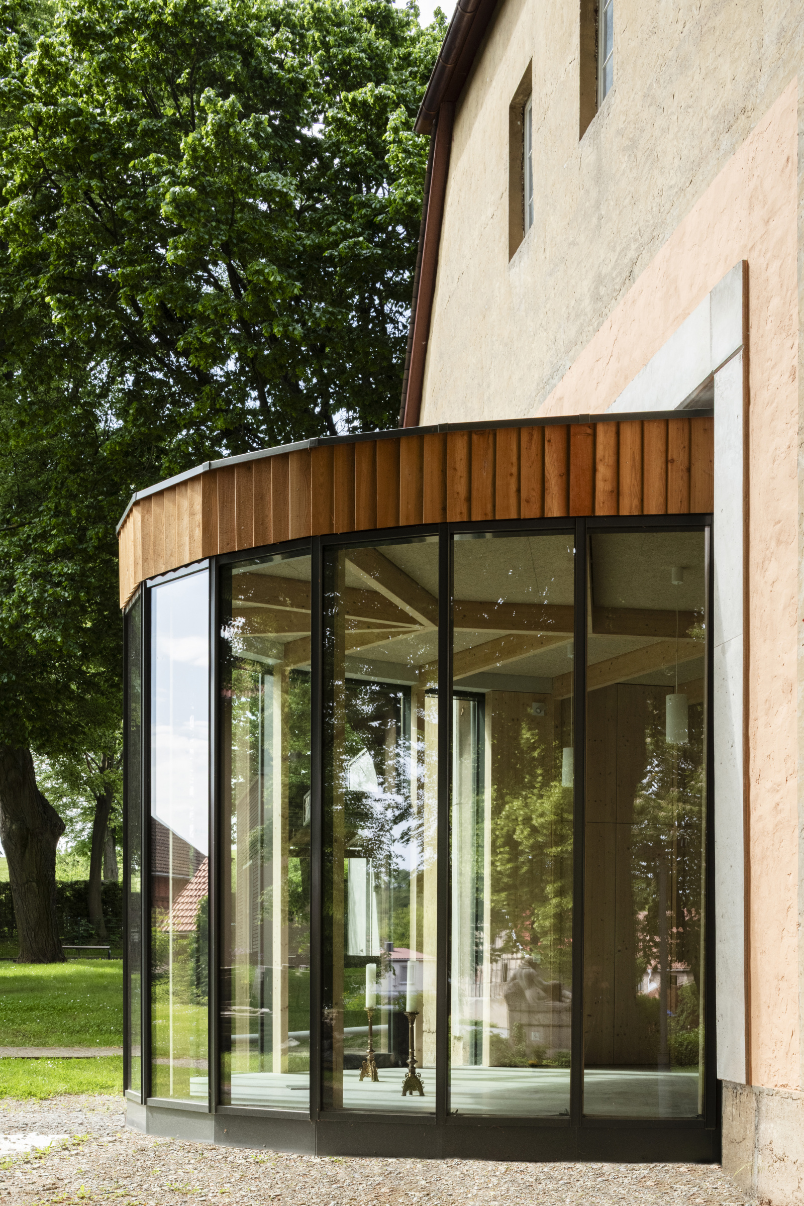 Dass unser Projekt überhaupt umgesetzt werden konnte, lag am – in den 1960er Jahren begonnenen – Abriss des Chors, der aus Gründen der Baufälligkeit durchgeführt werden musste und ein etwa um ein Drittel verkürztes Kirchenschiff zur Folge hatte. Unser Ziel war es, einen Entwurf zu entwickeln, der die verbliebene historische Bausubstanz respektvoll einbindet. Dabei war uns wichtig, die Kirchenkubatur zu erhalten, zu schützen und denkmalgerecht zu sanieren. Schließlich sollte ein zukunftsfähiges Nutzungskonzept eine ganzjährige, barrierefreie Nutzung für alle Gemeindemitglieder ermöglichen – über den Gottesdienst hinaus.