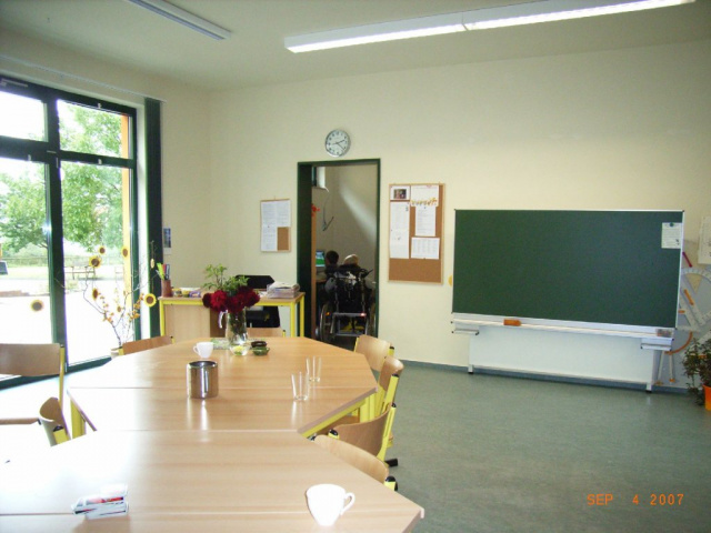 Die alte Dorfschule aus dem Jahr 1902 sowie ein Anbau aus dem Jahr 1970 wurden für die spezielle Nutzung "Förderschule für geistig Behinderte" umgebaut. Eine grundlegende Neuorganisation aller vohandenen Räume mit erheblichen Eingriff in die vorhandene Bausubstanz war nötig. Barrierefreiheit für Rollstuhlnutzer wurde durch den Anbau eines Aufzuges sowie den zusätzlichen Einbau einer Geschossdecke realisiert. Auch die Sanitärbereiche wurden auf die spezielle Nutzung Förderschule für geistig und körperlich Behinderte abgestellt.