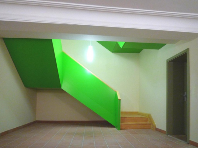 Mit dem Umbau und der Modernisierung entstanden im historischen Herrenhaus insgesamt neun Wohnungen. Unter Wahrung der vorhandenen Tragstruktur aber mit neuen Grundrissen wurden drei Wohneinheiten pro Etage angelegt. Zur Erschließung wurde ein innenliegendes Treppenhaus als eigenständiges und neues Architekturelement eingebaut.