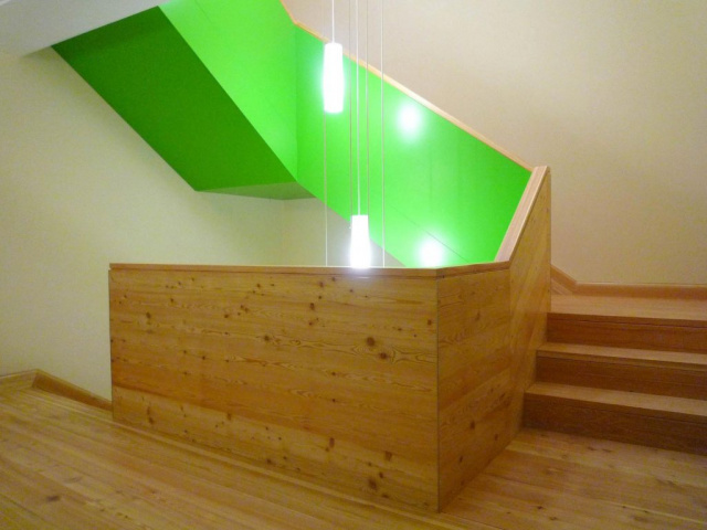 Die Wohnungen entstanden als klassische Zwei- und Dreiraumwohnungen mit Küche und Bad. Besonders wichtig war uns die Gestaltung und Ausstattung der Wohnungen mit guten, natürlichen und auch ortstypischen Materialien. So erhielten alle Wohnungen besonders gestaltete Bäder, sowie Einbauten, Fensterbänke und Bodenbeläge aus massivem Lärchenholz.