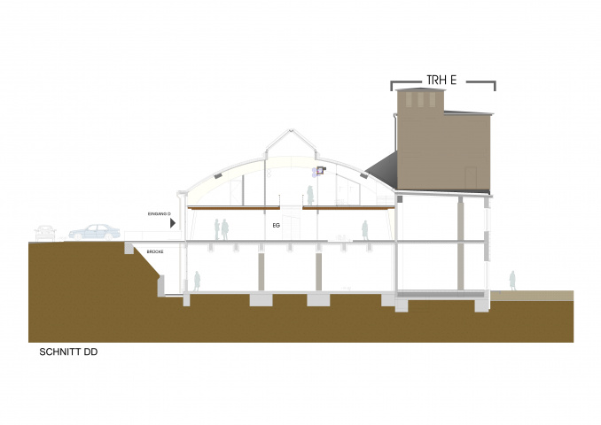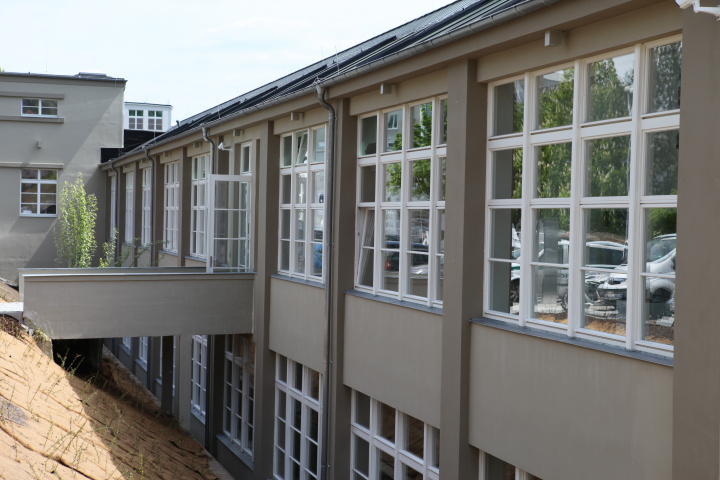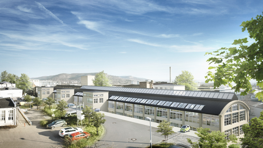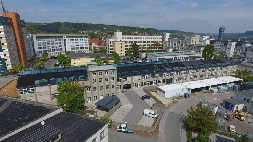 Bei dem Umbau und der Sanierung der Gesamtanlage konnten 4 Mieter: die Kriminalpolizei Jena, die Firma Accenture, Tiveras und Jabil im Gebäude Platz finden. Durch die hohe Geschosshöhe von fast 7m im Erdgeschoss wurde eine Vollholzdecke verbaut, die das Gebäude aufgrund der vorhandenen Schwerlastkonstruktion problemlos aufnehmen konnte. Im Inneren zeigt sich nun aufgrund der Gebäudetiefe von 18m eine attraktive Mittelgalerie, die das Gebäude über große Teilbereiche begleitet.