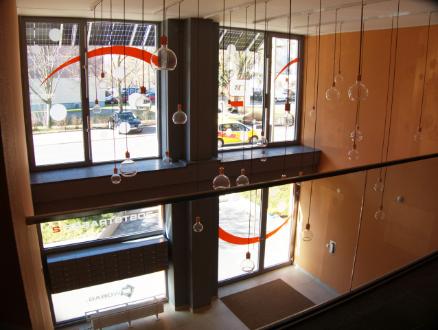 Alle Räume behielten die großen Fenster und haben die Möglichkeit über ein gleichzeitig Verschattung bietendes Balkonkraftwerk ihre Nebenkosten zu senken. Das gesamte Haus speist sich aus erneuerbaren Energien durch eine Luft-Wasser-Wärmepumpe und durch eine Sole-Wasser-Wärmepumpe. In den Sommermonaten trägt die Deckenkühlung zum Wiederaufladen des Erdsondenfeldes bei.