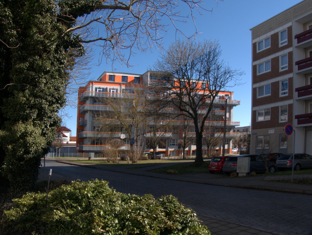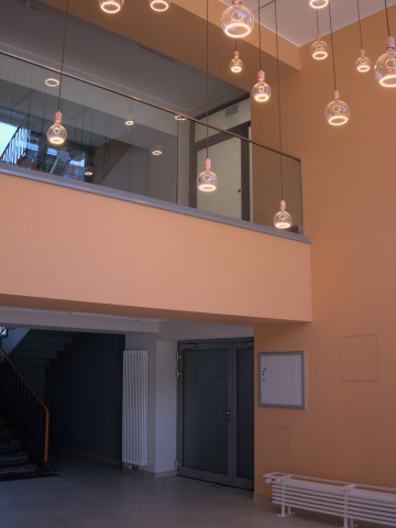 Der vorhandene Aufzug wurde erweitert, die barrierefreie Erreichbarkeit aller Geschosse sichergestellt und das Angebot von 40 Mikroappartments, einer Wohngruppe, sowie eines Pflegedienstes eingegliedert.