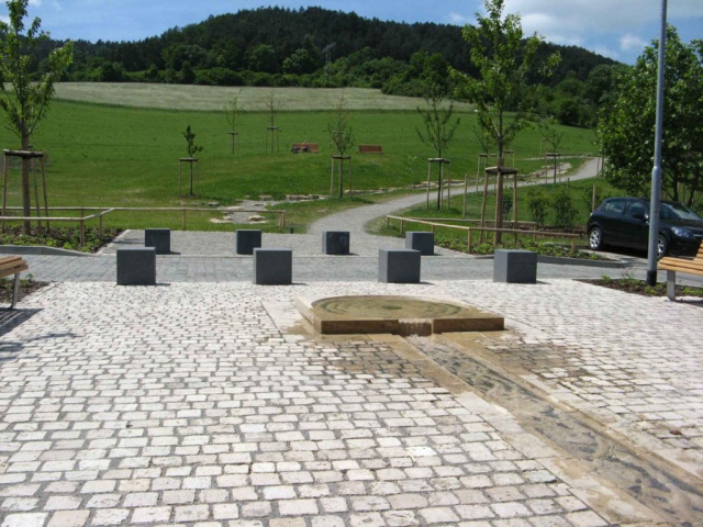 Die „Wasserachse“ erhält mit der Quelle einen Auftakt und oberen Abschluss, der zugleich den Übergang zur freien Landschaft herstellt.
