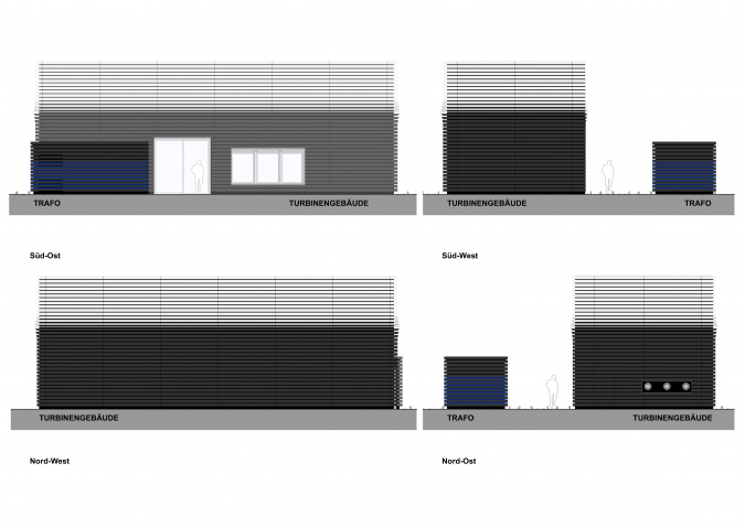 Das Wasserkraftwerk am Rande des BUGA 2021-Geländes ist Teil des rund 45 Kilometer langen Westrings. Im Gefälle dreier Höhenstufen (Kaskaden) über 380 Höhenmeter fließt das Wasser der Talsperre Schmalwasser über die Talsperre Tambach-Dietharz in die so genannte Westringkaskade. Die symbolkräftige Inszenierung des Themas „Wasserkraft“ und die mediale Vermittlung von Hintergrundinformationen zur regenerativen Energieerzeugung durch Rohwasser prägen die Gestalt der metallischen Fassade. Schaufenster und Bullaugen lassen den Blick in die Turbinenanlage zu und bieten Besucherinnen und Besuchern über Taster die Möglichkeit zum Bedienen der Informationsangebote. Die Fernwirkung wird durch eine lastabhängige Lichtsteuerung der fassadenintegrierten Beleuchtung an der Trafostation erreicht, welche in den Abendstunden besonders deutlich zur Geltung kommt.