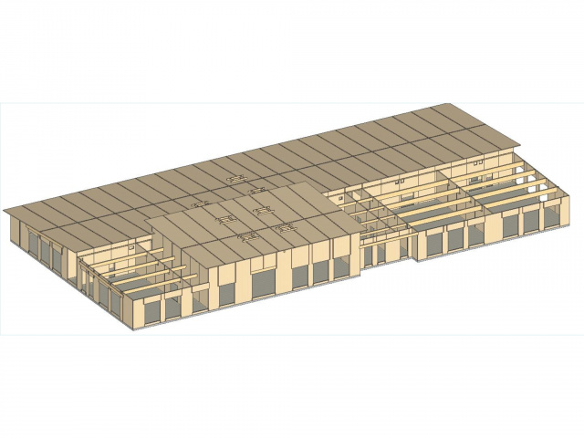 Konstruktiv wurde das Gebäude in Vollholzbauweise aus Kreuzlagenholz errichtet. Dies ermöglichte größtenteils stützenfreie Grundrisse mit nur 12 cm Wandstärke bei einer maximalen Raumhöhe von 7,15 m. Die Standardwerkstätten haben eine Größe von 11,75 x 15,70 m. Das Dachtragwerk besteht aus Brettschichtbindern in Kombination mit 9 cm dicken Kreuzlagenholz-Dachplatten. Durch die Vorfertigung der Holzelemente wurde die Bauzeit des Rohbaus auf ca. 9 Wochen verkürzt. Die hohe Maßhaltigkeit der CNC-gefrästen Holzplatten ermöglichte die Herstellung der Fensterelemente vor Fertigstellung des Rohbaus.
