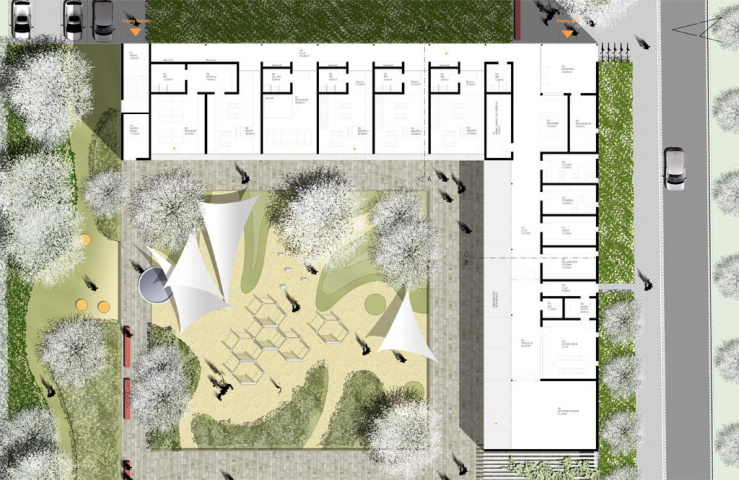 Interdisziplinärer Wettbewerb mit Architekten und Landschaftsarchitekten.