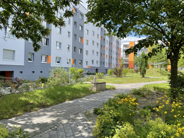 Gegenstand der Freianlagenplanung sind der Innenhof zwischen den sanierten Wohngebäuden und die unmittelbar angrenzenden Flächen im Umfeld der Gebäude.
