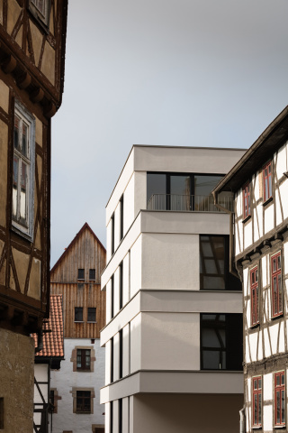 Die ruhige Wohnlage, etwas abseits vom Stadttrubel und doch in nächster Nähe zum Zentrum von Schmalkalden, lässt kaum Wünsche offen. Man genießt die fußläufige Nähe zu Lutherplatz, Salzbrücke und Altmarkt, den Anschluss zum städtischen Grüngürtel, die historische Nachbarschaft und die Aussicht zum Schloss Wilhelmsburg. Der gemeinsame private Innenhof schafft Distanz zum Öffentlichen und bietet Begegnungsraum für die Bewohner.