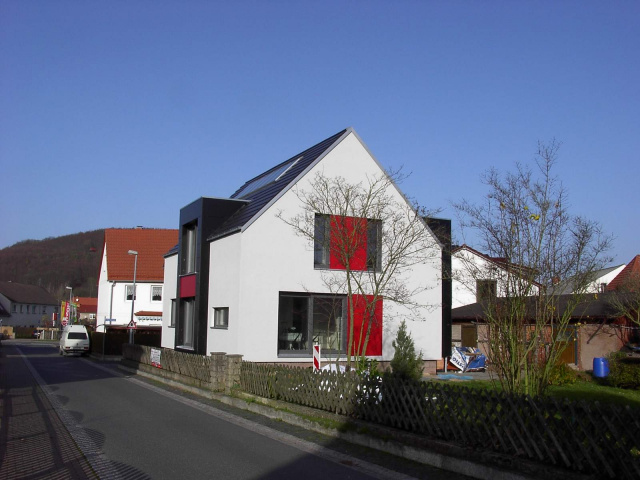 Durch unsere Planung ist aus dem ehemals energieverschwendenden Gebäude mit einem Jahres-Primärenergiebedarf von ca. 400 kwh/m²; (40-l-Haus) ein Energiesparhaus mit einem deutlich geringeren Bedarf von ca. 55 kwh/m²; (5,5-l-Haus) entstanden. Diese hohe Einsparung von ca. 86% wurde neben dem kompletten Austausch der Heizanlage und Ersatz durch moderne, energiesparende Technik unter Einbeziehung regenerativer Wärmequellen durch konsequente Maßnahmen an der Gebäudehülle möglich.