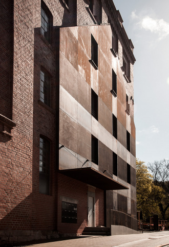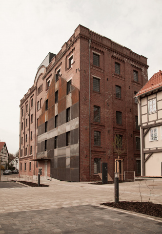 So führt der Rückbau des Wohn- und Verwaltungsgebäudes zur Freistellung des prominenten, 5-geschossigen Produktionsgebäudes und schafft damit die Grundlage für die Entwicklung sehr gutbelichteter Wohnetagen. Der Fußabdruck des Mühlenkomplexes wird zudem auf ein dem Kontext angemessenes Maß verkleinert. Die Nahtstelle des abgebrochenen Gebäudeteils zeichnet sich gestaltprägend durch eine vorgehängte Fassade aus Cortenstahl ab und wird zum Identitätsgeber des Gebäudeensembles. Der bauliche Eingriff im Zuge der Revitalisierung wird auf diese Weise subtil sichtbar gemacht.