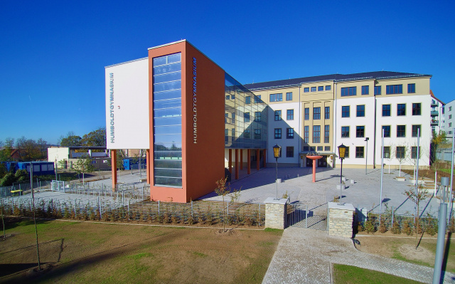 Blick in Richtung Kleiner Herrenberg, Bild: Michael Miltzow Die Sporthalle wurde im Jahr 1975 in Typenbauweise SPH-N-18x36 projektiert und 1981 in Nutzung genommen. Sie verfügt über ein eingespanntes Stützen-Riegel-System und sogenannte VT-Falten als Dachkonstruktion. Der Baukörper besteht aus zwei Teilen: So schließt an der östlichen Längsseite der Sporthalle ein niedriger eingeschossiger Sozialtrakt an. Der Hallenbereich ist an beiden Längsseiten mit einem Lichtband versehen. Erschlossen wird das Gebäude über den Haupteingang im Sozialtrakt. Die Generalsanierung der Sporthalle bedeutet den Abschluss der Arbeiten auf dem Schulcampus; dazu gehörten auch die Herstellung der Barrierefreiheit sowie die Umsetzung des Brandschutzkonzepts.