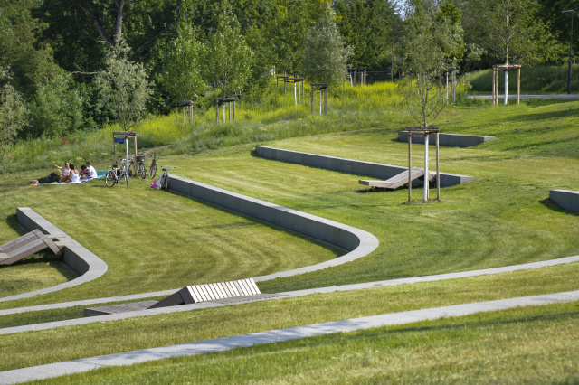 Gerastrand in der Nördlichen Geraaue, Bild: © Hanns Joosten Durch die Entwicklung eines 64 ha großen Grünzugs entlang der Gera wurde das Wohnumfeld im bevölkerungsreichen Norden dauerhaft aufgewertet. Auf einer Länge von über vier Kilometern, vom Nordpark bis zum Kilianipark, wurden bereits bestehende Grünanlagen aufgewertet und durch neue Parkanlagen zu einem zusammenhängenden Landschaftspark verwebt. Abwechslungsreiche Spiel- und Sportanlagen wechseln sich ab mit attraktiven Gartenpartien. An den Siedlungsrändern vermitteln Parkterrassen zwischen der Stadt …