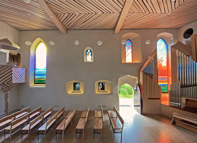 Südseite, Bild: Matthias Schmidt Kirchenburg Walldorf/Werra Wiederaufbau unter Neugestaltung des Innenraums ... sanfte Annäherung an einen neuen, doch vertrauten Kirchenraum ... Ein Brand hat 2012 die Kirche bis auf ihre Außenmauern total zerstört. Rasch wurde der Entschluss zum Wiederaufbau des Gotteshauses in der Kirchenburg auf dem Bergsporn in Walldorf gefasst, um dem Verlust zu begegnen und den Ort lebendigen Kirchenlebens zu gewähren und auszubauen. In diesem Verständnis haben Kirchgemeinde, Landeskirche, die Gemeinde …