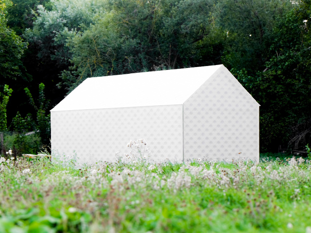 Ansicht Südwest, Bild: Volker Drusche Die traditionelle Ortsstruktur basiert auf Gehöften mit einem vorderen Hofbereich und hinteren Bauerngarten. Dieser Grundstücksaufteilung folgt die Reurbanisierung. Regionaltypische Bauweisen sind mit modernen Mitteln in zeitgemäße Architektur übersetzt. Das Tinyhouse ermöglicht Nutzungen als Ferienhaus, Wohngebäude, ländlicher Coworking-Space und dergleichen. Die niedrigen Baukosten beweisen die ökonomische Nachhaltigkeit des Plusenergiehauskonzepts. Eine suffiziente Grundrisslösung, Rollstuhleignung, die Verwendung regionaler Holzprodukte, eine effiziente Gebäudehülle, ein sehr guter passiver Sonnenschutz, Dachbegrünung und PV-Module, Lowtech-Heizung und -Lüftung sowie naturnahe Abwasserbehandlung sind weitere Merkmale des Objekts. Der Ertrag der Photovoltaikanlage übersteigt den Verbrauch um mehr als das Doppelte.