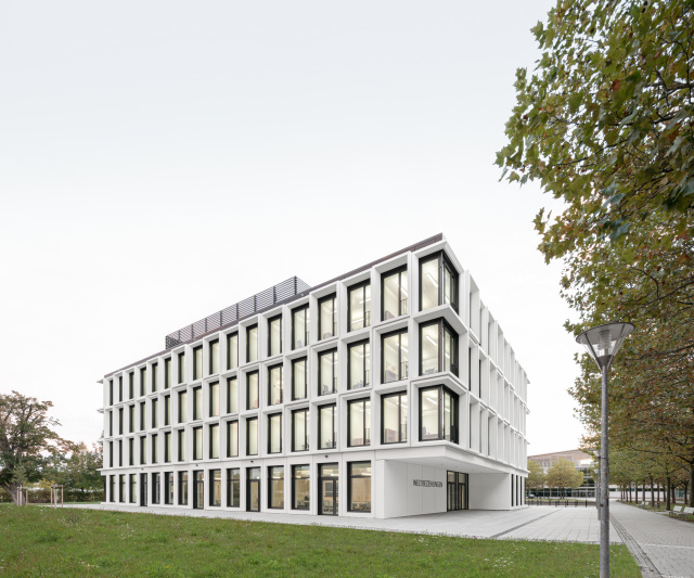 Forschungsbau „Weltbeziehungen“, Bild: Steven Neukirch Mit dem Forschungsbau ist die Umsetzung des langfristigen Forschungsprogramms „Attraktion, Repulsion, Indifferenz – eine kulturvergleichende Analyse von Weltbeziehungen“ gelungen. Der Neubau setzt zukunftsweisende Akzente im Hochschulbau, weil er konsequent auf verschiedene Formen wissenschaftlicher Arbeit und Kommunikation hin angelegt ist. Aus den städtebaulichen Randbedingungen und der Idee zur inneren Organisation des Gebäudes resultiert ein kompakter, trapezförmiger Baukörper, der sich mit seinen vier Geschossen in der Höhenentwicklung an der umgebenden Bebauung orientiert. Das Gebäude ist geprägt von der Idee einer „Stadt“, die durch die spannungsvolle Abfolge öffentlicher, halböffentlicher und privater Räume unterschiedliche Kommunikationsebenen bietet.