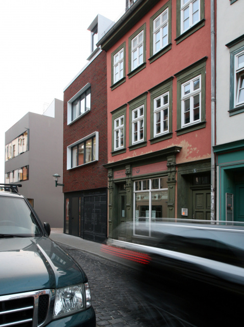 Im Lutherhaus, einem der ältesten erhaltenen Fachwerkhäuser Thüringens, wohnte Martin Luther während seiner Schulzeit von 1498 bis 1501. Als bedeutende Gedenkstätte der Reformation ist es seit 1956 kulturhistorisches Museum. Die Platzprobleme und die schwierige Abfolge im Museumsrundgang konnten durch eine grundlegende bauliche Veränderung und Erweiterung gelöst werden. Mit einer neuen Ausstellung ist das Haus nun zeitgemäß. Der hallenartige Neubau mit Treppen, Galerien und einem Aufzug lehnt sich ans historische Haus an, ordnet die Museumswege neu und schafft eine weitgehende Barrierefreiheit. Hell und modern gestaltet, steht er bewusst im Kontrast zum kleinteiligen alten Haus. Er bietet fantastische Ein- und Ausblicke. Die dreigeschossige Sichtbetonwand wird als Museumsfläche genutzt.