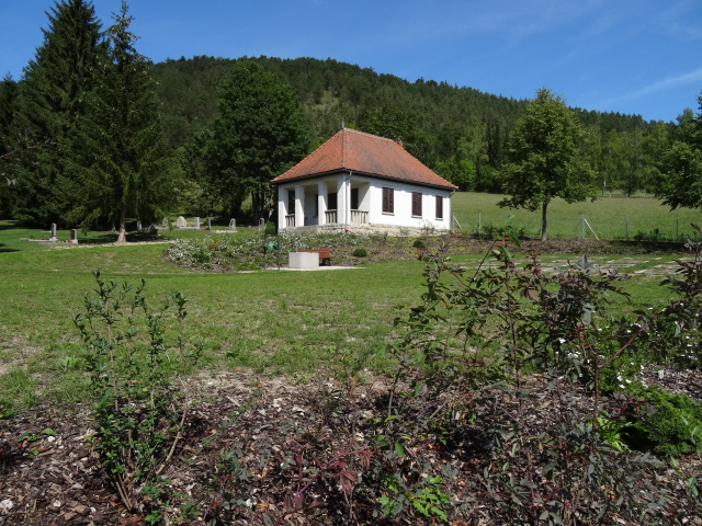 Friedhofserweiterung Dosdorf, Bild: Steffen Möbius Der Dorffriedhof in Dosdorf liegt eingebettet in die hügelige Landschaft Thüringens. Aufgrund des Baumbestandes und bestehender Grabrechte konnte eine Terrassierung der Bestandsflächen nicht umgesetzt werden. Da auch die vor der heutigen Friedhofsfläche befindlichen Wiesen zum Grundstück des Friedhofes gehören, wurde die langfristige Verlagerung favorisiert. Durch umfangreiche Erdarbeiten wurde die gesamte Fläche überformt, sodass alle Bereiche zukünftig barrierefrei und sicher begangen werden können. Zur Einfriedung des Geländes wurden überwiegend standortgerechte Sträucher verwendet und damit eine wesentlich bessere Einbindung der Fläche in den Naturraum erreicht. Von der zentralen Wasserstelle gibt es schöne Blickbeziehungen zu den Gräbern und in die freie Landschaft.