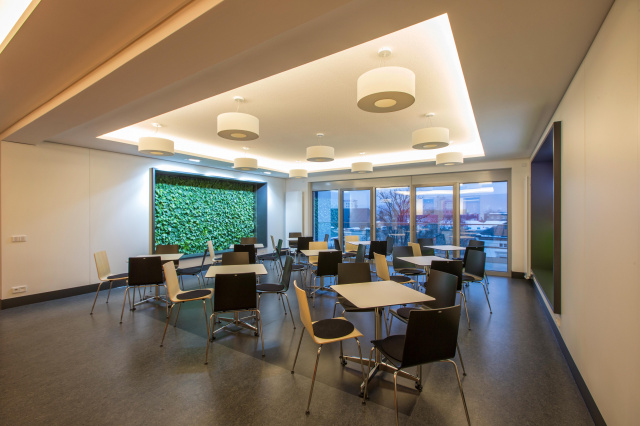 Bild: Marc Rößling Mit dem Neubau der Werkstatt in Oberzella wird behinderten Menschen ein Arbeits- und Berufsbildungsangebot in einem rollstuhlgerechten Umfeld geboten. Es ist ein Haus entstanden, in dem jeder gerne arbeitet und Teil der Gemeinschaft ist. Bei der Konzeption des Gebäudes wurde viel Wert auf Tageslicht, eine lesbare und abwechslungsreiche Raumkombination und eine gute Orientierung gelegt. Die Räume gruppieren sich entlang einer Mittelachse, mit wechselnden Gärten, Höfen, Ausblicken und Außenraumbezügen. Mit Hilfe der Gärten und Pausenhöfe entsteht eine architektonisch wie sozial qualitativ hochwertige Gebäudestruktur, durch die der Außenraum überall im Haus spürbar bleibt. Die geschützten und verschieden bepflanzten Gärten werten die Innenräume auf, ebenso die Ausblicke in den Naturraum der Werraaue. Durch die an der Mittelerschließung angeordneten Räume ist das Haus hochflexibel und der kompakte Baukörper in Herstellung und Betreibung nachhaltig.