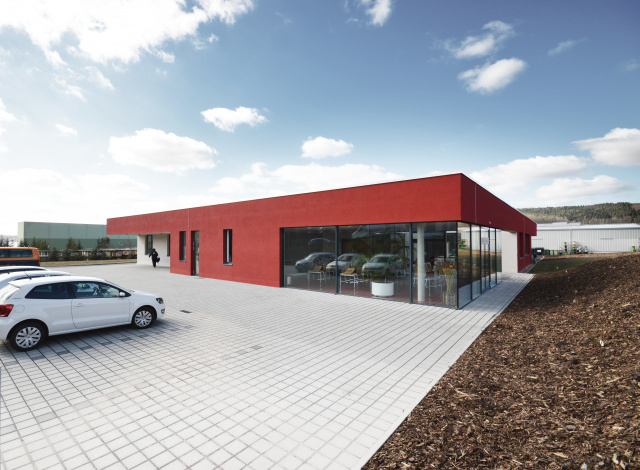 Südostansicht, Bild: Volker Drusche Die Gestaltung und innere Organisation spiegelt den innovativen Charakter wider und ermöglicht eine flexible Anpassung an die Unternehmensentwicklung. Zum Erhalt eines dauerhaft umweltschonenden und kostengünstigen Gebäudebetriebs kamen zukunftsfähige Dämmqualitäten zur Ausführung. Der Wärmebedarf ist derart gemindert, dass die Wärmeerzeugung vollständig auf der Basis regenerativer Energien erfolgen kann. Der Primärenergiebedarf liegt mehr als 60 Prozent unter der Anforderung gemäß Energieeinsparverordnung. Durch die geplante Montage einer Photovoltaikanlage auf dem Süddach wird das Gebäude zum Plusenergiehaus! Am Betriebsgebäude der Firma InnoKlim konnte gezeigt werden, dass ein integraler Planungsansatz zu einem gestalterisch und wirtschaftlich überzeugenden Gesamtergebnis führt. Weitere Beteiligte: Dirk Lind, Gotha (HLS-Planung); Gabriel Urban, Weimar (Bauleitung); Martin Luck, Weimar.