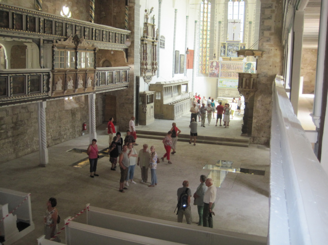 Ansicht Kirchenschiff/Chorraum, Bild: Bernhard Smits Die Stadtkirche St. Peter und Paul in Weißensee ist ein bedeutender gotischer Kirchenbau. Seit den 1980er Jahren war die Kirche baupolizeilich gesperrt. Die Stadt Weißensee hat im Jahr 2005 mit der Kirchgemeinde einen Nutzungsvertrag abgeschlossen. Seit 2012 ist eine Begegnungs- und Veranstaltungsstätte entstanden für Versammlungen, Ausstellungen, Konzerte, aber auch für Gottesdienste. Der Chorraum ist mit dem Kompositaltar der bedeutendste sakrale Raum der Kirche. Der Entwurf beinhaltet bewusst keine feste Trennung zwischen sakralem Chorraum und weltlicher Nutzung im Kirchenschiff. Je nach Veranstaltung ist der Aufbau eines mobilen, freistehenden Paravents zwischen Chorraum und Kirchenschiff möglich. Im Kirchenraum wurden Wände, Decken, Fußböden, Emporen und Beleuchtung restauriert und teilweise erneuert. Planungsziel war die Erhaltung des Gesamtensembles von Chorraum und Kirchenschiff als Zeitzeugnis in Verbindung mit dem beispielhaften öffentlich-kulturellen Nutzungskonzept der Stadt Weißensee.
