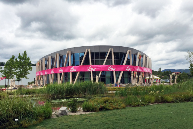 Viba Nougat-Welt, Bild: AKT Die einmalige Chance, Brachflächen in eine lebendige Produktionswelt und "Welt der Sinne" umzuwandeln, wurde genutzt durch eine klare Figur von hoher stadträumlicher und funktionaler Qualität, eingebettet in den Landschaftsraum der Fuchsenkothe. Die Komponenten Sehen (Kino), Riechen (Rohstoffe), Hören (Musik), Geniessen (Gastronomie) sind wie "Pralines" in einem "Ballotin" angeordnet und versinnbildlichen so die Ansprüche an Produktqualität und Produktions-qualität durch die Architektur selbst. Die …