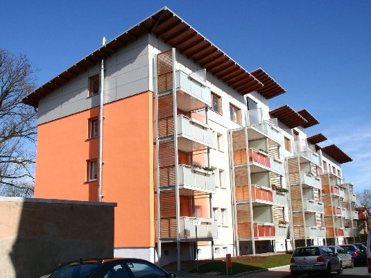 Das Gebäude befindet sich im Stadtzentrum von Sondershausen und wurde 1987 als Plattenbau (WBS85) errichtet. Durch Reduzierung der Wohnungsanzahl von 90 auf 59 wurden zeitgemäße Grundriss-lösungen konzipiert. In Verbindung mit neuen Balkonen und Erkern an der Südseite wurden Küchen mit Fenstern angeordnet. Die Belichtung der Wohnungen wurde durch großzügige Fenster und reduzierte Fensterbrüstungshöhen in Verbindung mit rahmenlosen Glassicherungen verbessert. Neue im Gebäude integrierte Aufzüge sind …