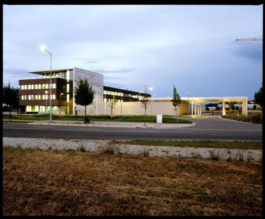 Ostansicht, Bild: Jens Lönnecker Inmitten der Südthüringer Metropole Suhl befindet sich das historische Sauergelände. Der Ort ist von der Waffenfabrikation geprägt. Signifikanter Zeitzeuge ist der "Karabinerbau" aus dem Jahr 1937. Stilllegung und Abbruch in der letzten Dekade des 20. Jahrhunderts führten zu einem erheblichen Funktionsverlust des Areals. Die Revitalisierung ist für die städtebauliche Entwicklung bedeutsam. Das Gebäude versteht sich als Bindeglied zwischen Tradition und moderner Technik. Es definiert sich neu, nicht …