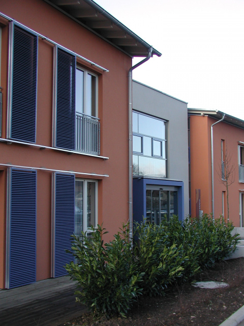 Ausgezeichnet mit einer Anerkennung zum "architektourpreis 2005" Folgende Kriterien sollte der geplante Neubau vor allem erfüllen: Einfach in der Konstruktion. Innovativ im Materialeinsatz. Ökologisch im Gesamtkonzept. Entstanden ist ein 3 Seiten Hof : Schuppen – Kinderhaus - Haupthaus Zur Strasse verbirgt ein ohne sichtbare Öffnungen und mit unbehandeltem Lärchenholz verkleideter „Schuppen“ die notwendigen Nebenräume. ( Keine Unterkellerung ) Ein eingeschossiges „Kinderhaus“ ( …