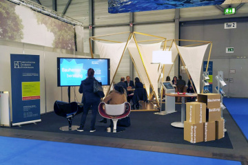 „Qualität Planen, Zukunft Bauen“: Gemeinschaftsstand mit den Schwerpunkten Baukultur, Architekturqualität und Nachhaltigkeit in Halle A2 / Stand 334
