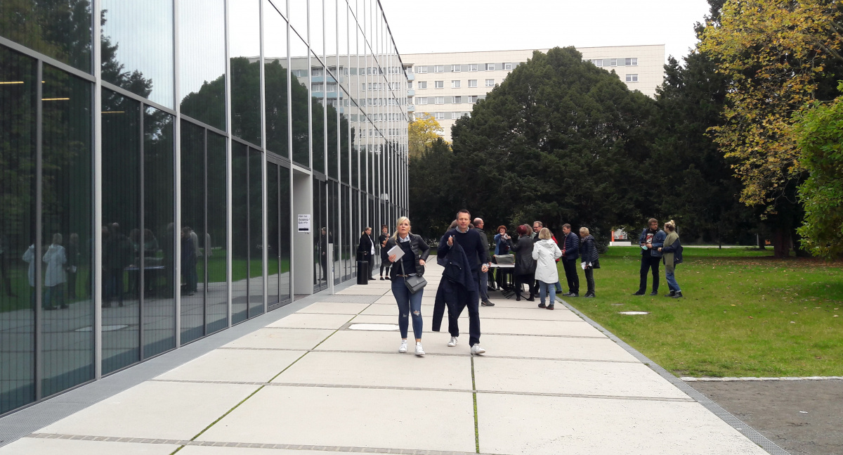 Etwa 30 Thüringer Architekt*innen und Bauhausinteressierte reisten am 23. Oktober 2020 mit Bus oder PKW aus Nordthüringen, Erfurt, Weimar und Zeulenroda in die drittgrößte Stadt unseres benachbarten Bundeslandes. Gemeinsames Ziel war es, mehr über die Geschichte und die Menschen des Bauhauses, seine Traditionen und Impulse zu Architektur, Kunst und Design in und über Deutschland hinaus durch die Expertin Carmen Niebergall von tourenreich – Architektur- und Kunstreisen Mitteldeutschland zu erfahren.