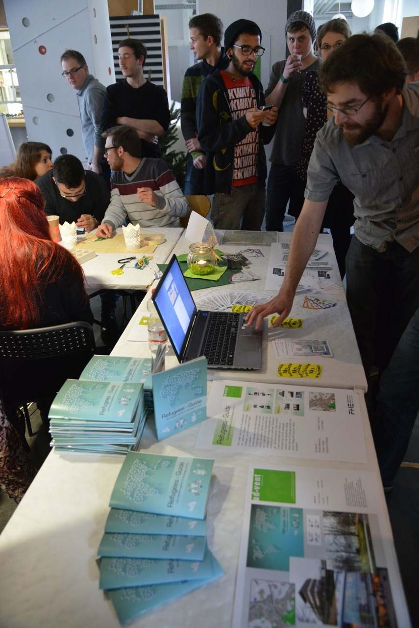 Zur Präsentation wurde ein alternativer Weihnachtsmarkt aufgebaut, an dem es verschiedene Produkte gab, die das Ankommen erleichtern, die aber auch die Angst vor dem Fremden beseitigen helfen. Hier wurden Spiele gezeigt, die ohne Sprache eine Kommunikation ermöglichen. Man konnte Speisen aus verschiedenen Regionen probieren; bilinguale oder auf Piktogrammen basierende Stadtpläne mit den wichtigsten Zielen waren im Angebot. Eine andere Gruppe entwickelte eine Art Tutorium, in dem durch ältere Geflüchtete Erfahrungen an die Neuankömmlinge weitergegeben werden können. Ein Memory-Spiel wurde geschaffen, um das Erlernen der deutschen Sprache zu erleichtern. Auch mit den Benimmregeln in verschiedenen Kulturen, die den Kulturschock erzeugen, setzten sich manche Gruppen auseinander. Mehrere Filme entstanden in diesen wenigen Tagen, die sich mit dem Alltag und möglichen Konflikten beschäftigten. Eine Sprachbörse und die Auseinandersetzung mit Schrift und Piktogrammen spielten eine wichtige Rolle, was die Kommunikation anging. Interviews und Sketches wurden dokumentiert
