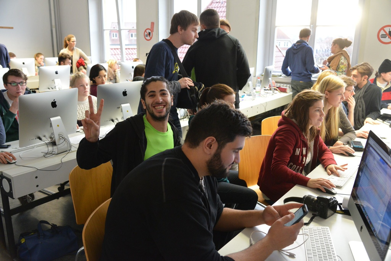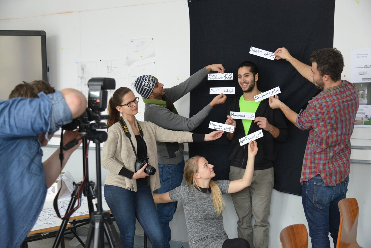 Wie in jedem Jahr führte die Fakultät in der letzten Woche vor der Weihnachtspause eine solche Kompaktwoche durch. Dabei wurde der Normalbetrieb angehalten. Keine Vorlesungen, keine Seminare, nicht einmal die Arbeit am Projekt fanden in dieser Woche statt. Dafür war der Kopf der Studierenden frei für ein Thema, das so weit weg vom planerischen Alltag zu sein schien. Aus gegebenen Anlass widmete sich dieses Jahr das Thema „ad · vent“ (lat.: Ankunft) dem Ankommen in einem fremden Land: in Thüringen. Wir haben Geflüchtete eingeladen, zusammen mit den Studierenden zum Thema zu arbeiten. Etwa 60 Geflüchtete, überwiegend aus Syrien und Afghanistan, folgten der Einladung und erarbeiteten sehr intensiv in gemischten, semesterübergreifenden Gruppen ein breites Spektrum an Lösungen. Selbst die Mensa reagierte mit schweinefleischfreier Kost, auch wenn sie nicht akzeptierte, dass Studentenpreise für die Flüchtlinge angemessen seien. Schließlich übernahmen die Professoren die Verpflegungskosten für die Gäste.