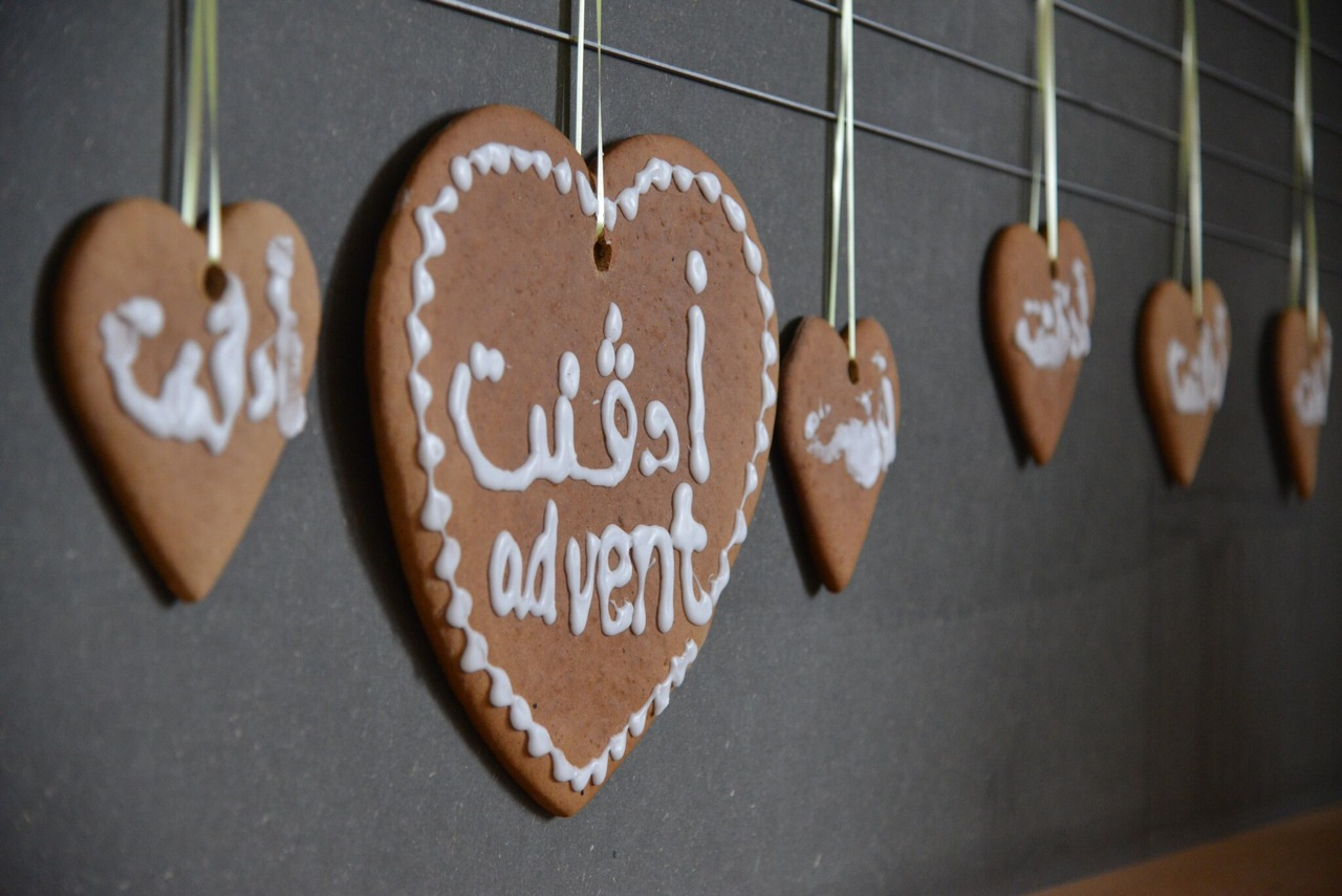 Die Arbeiten wurden von den Professoren juriert und mit Preisen ausgezeichnet – eigens angefertigte Lebkuchenherzen mit deutsch-arabischer Beschriftung „Advent“.
