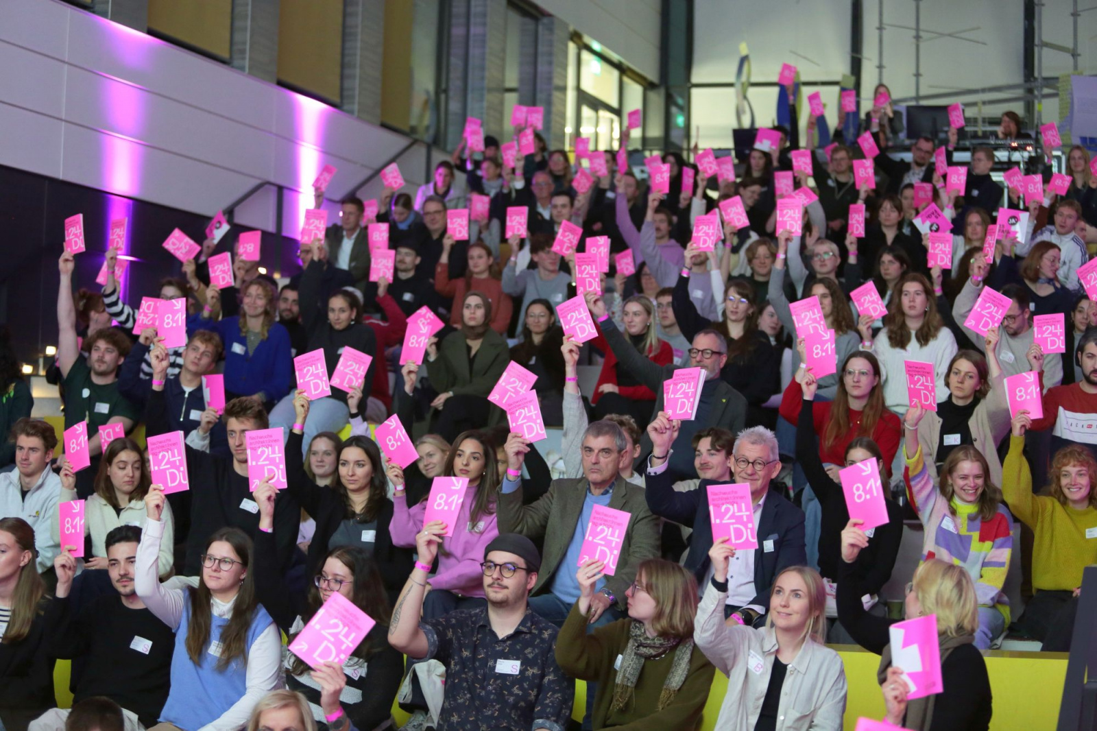 Im Mittelpunkt des Nachwuchsarchitekt:innentages 2024 standen Themen, die dem Nachwuchs aktuell auf den Nägeln brennen. Neben der Umsetzung der branchenweit geforderten Bauwende wurde über den Einsatz künstlicher Intelligenz in der Planungs- und Bauwirtschaft sowie über Berufseinstieg, Chancengerechtigkeit und ein Engagement junger Planerinnen und Planer innerhalb der Kammerstrukturen diskutiert. Zu den Teilnehmenden gehörten Studierende der Architektur, Innenarchitektur, Landschaftsarchitektur und Stadtplanung, Berufseinsteiger*innen, Lehrende sowie Vertreterinnen und Vertreter der deutschen Architektenkammern.