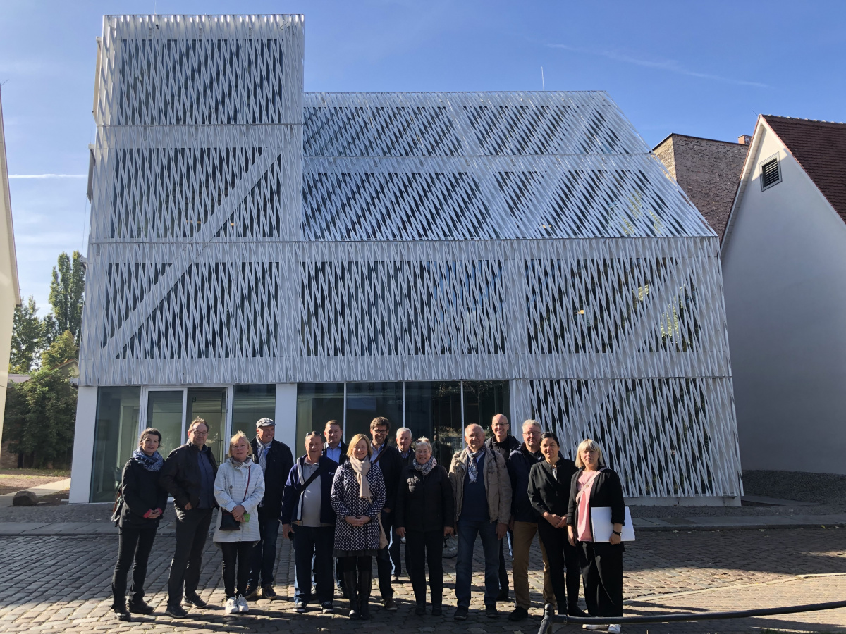 Dreizehn Thüringer Architektinnen und Architekten machten sich am 20. September 2019 auf den Weg nach Sachsen-Anhalt. Im über 1.200-jährigen Halle an der Saale sind Geschichte, Kunst und Architektur, Bildung und Wirtschaft sowie große Namen wie Francke, Luther, Händel und Genscher mit der Stadt eng verbunden. Salz und Halloren machten sie einst reich. Überdies sind das Bauhaus, sein Wirken und die Moderne innerorts unübersehbar. Dies zeigte uns Carmen Niebergall von tourenreich – Architektur- und Kunstreisen Mitteldeutschland. Nach Magdeburg gewährte sie uns ein zweites Mal Einblick, wie Stadtgeschichte gepflegt und architektonische Akzente in Sachsen-Anhalt gesetzt wurden.