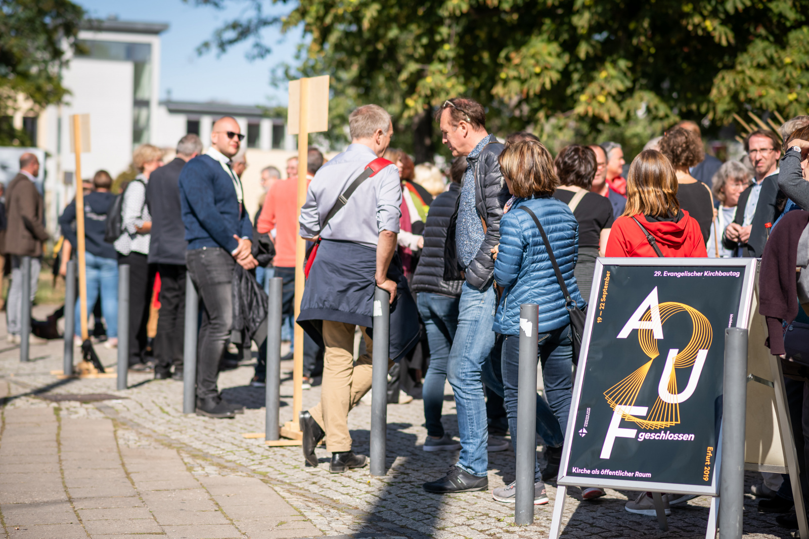 „Kirche als öffentlicher Raum“ – so lautete das Motto des 29. Evangelischen Kirchbautags, der vom 19. bis zum 22. September 2019 nach Erfurt lockte. Die Evangelische Kirche in Mitteldeutschland (EKM) war aufgrund ihres Querdenkerprojekts, welches in Kooperation mit der Internationalen Bauausstellung (IBA) Thüringen durchgeführt wird, als Gastgeberkirche ausgewählt. Etwa 370 Gäste aus ganz Deutschland, aber auch aus den Partnerkirchen in Worcester und Lund, aus Dänemark und sogar aus Island waren angereist, um sich dem Thema der Kirchengebäude und ihrer Zukunft zu widmen. Die EKM nimmt im zukunftsorientierten Umgang mit Kirchengebäuden mit ihrem Kooperationsprojekt deutschlandweit eine Vorreiterrolle ein.