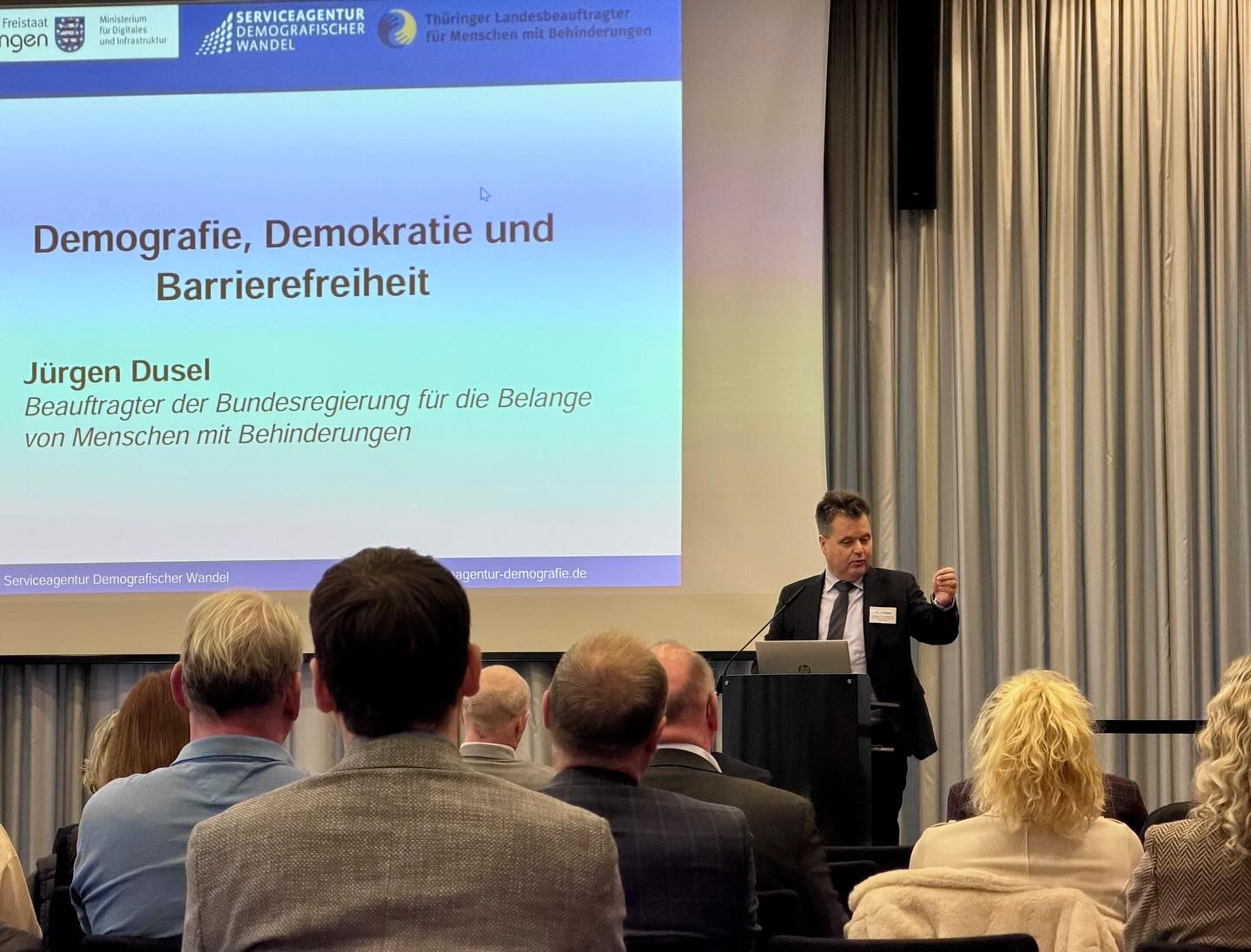 Am 26. November 2025 fand in der Weimarhalle (Seminargebäude) in Weimar die Thüringer Demografiekonferenz 2025 unter dem Titel „Barrierefreiheit als Schlüssel zur Teilhabe für alle“ statt. Veranstalter waren das Thüringer Ministerium für Infrastruktur und Digitales (TMDI), die Serviceagentur Demografischer Wandel sowie der Thüringer Landesbeauftragte für Menschen mit Behinderungen (TLMB).